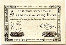 5 livres à échanger par somme de 400 livres contre assignats de 5 livres